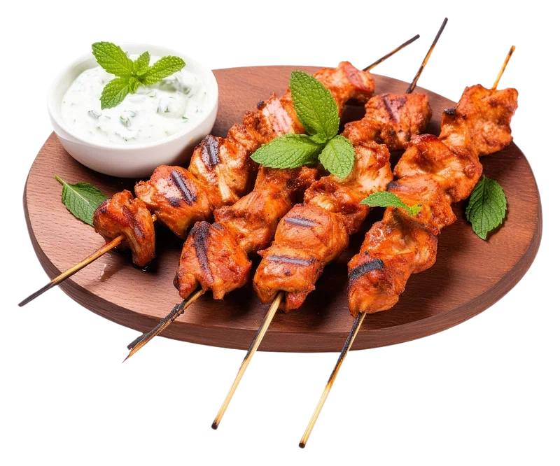 Experience the rich, smoky flavor of our signature Chicken Kabab—succulent ground chicken, delicately seasoned with ginger, garlic, onions, and Indian spices, then grilled to perfection in a traditional clay oven.